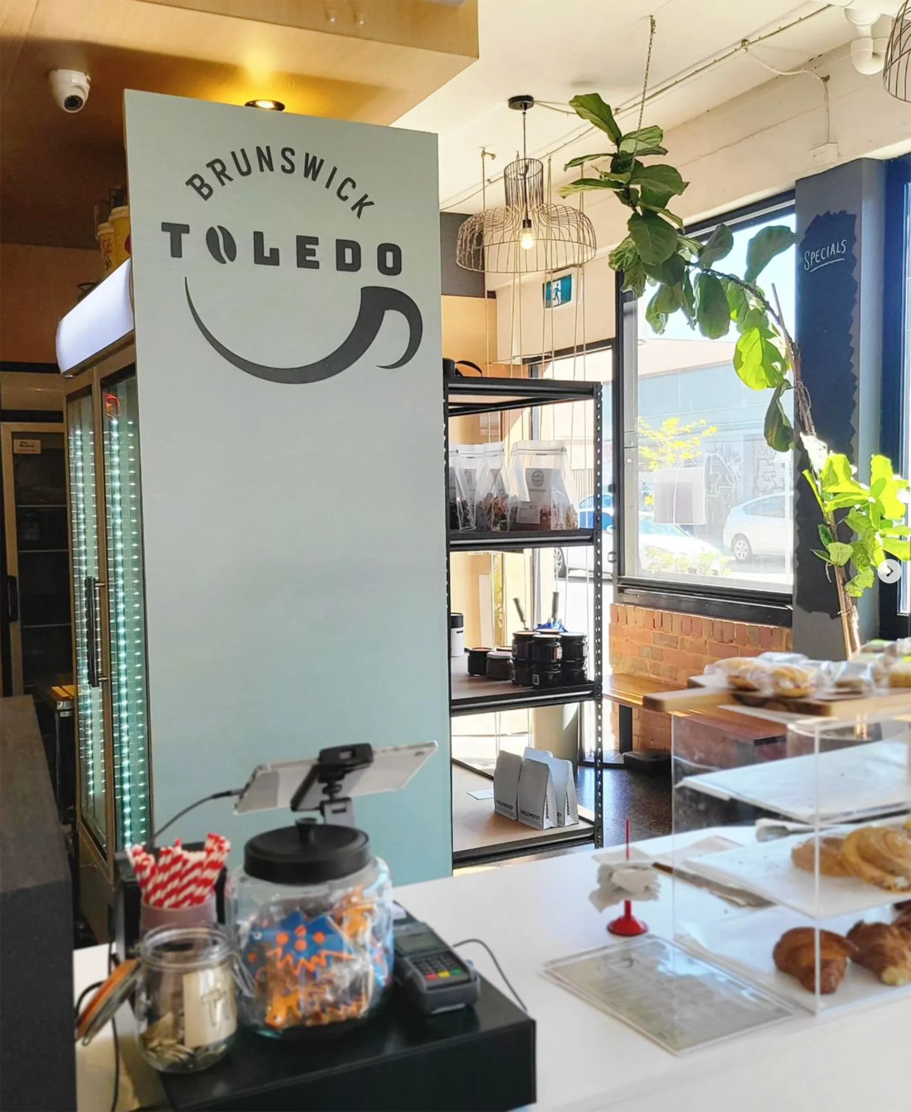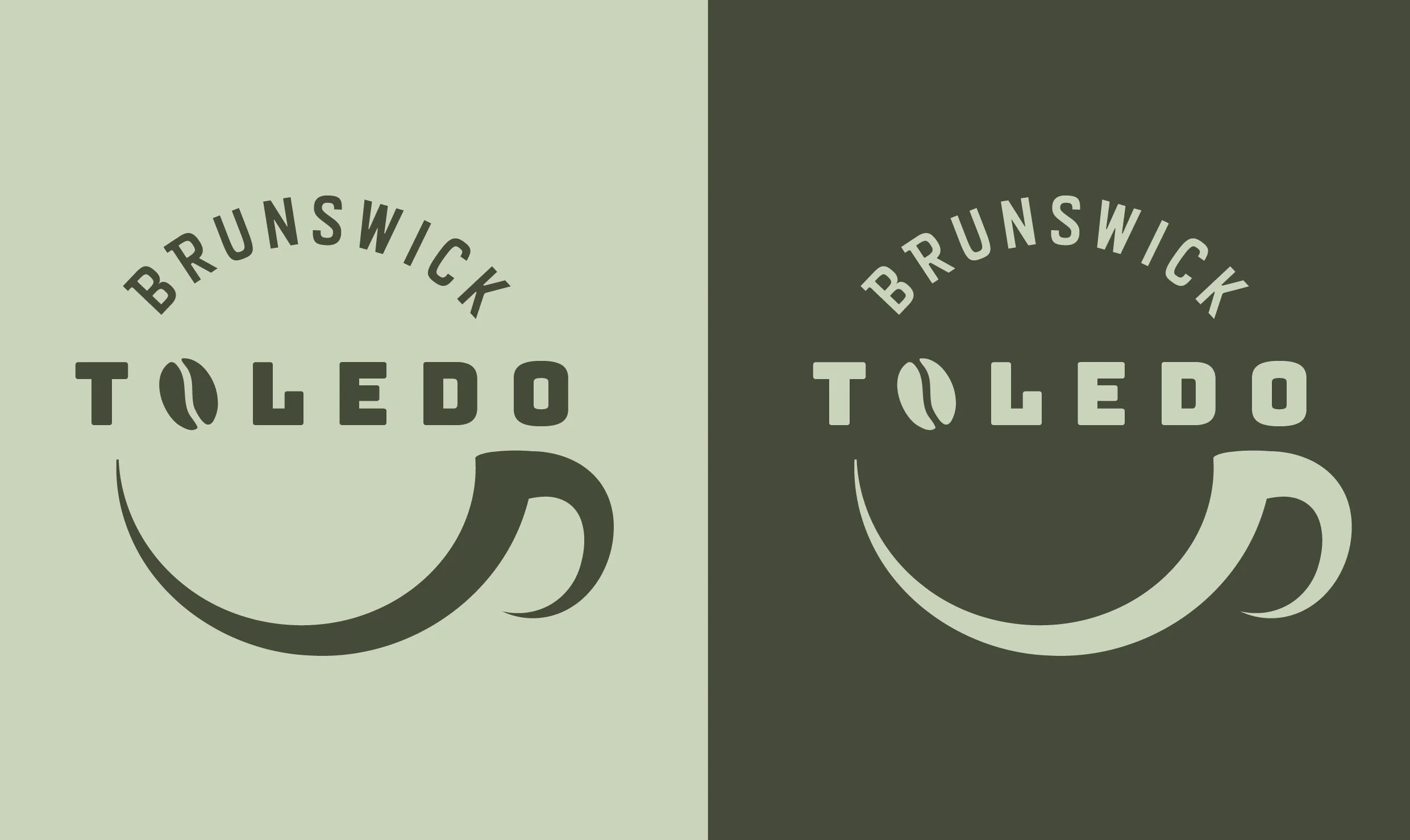 Originally, the client wanted ‘Brunswick’ to be the centre of the logo, however, after trialing this we suggested to the client that it would be benifitial to have Toledo be the focus of the logo in the centre, to which the client agreed. We also replaced the O in ‘Toledo’ as a coffee bean which ended up working well.
